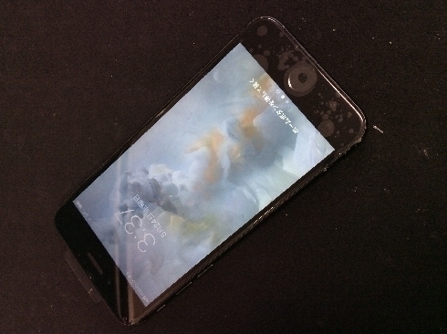 インカメラやセンサー類のある画面上部が強く割れており