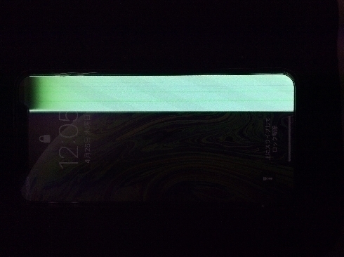 落下の衝撃で画面の右端が緑色になり眩しい位の表示不良を起こしています。