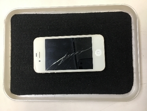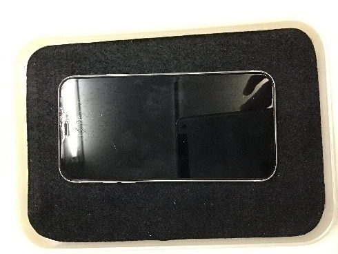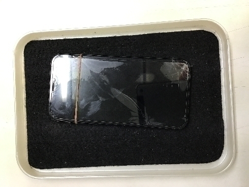 端末の状態としては充電圧や充電音・バイブレーションは動いているようなので画面を仮付けてみて、パスコードロックが掛かっていない場合は画面交換修理をするということでご依頼を承らさせていただきました。