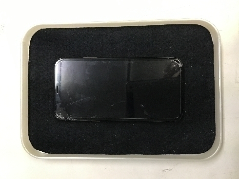 端末を拝見させていただくと、左上にガラスのひび割れと液晶漏れによる黒い模様が出てしまっておりその箇所が見えなくなってしまっています。