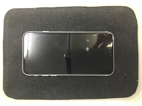 iPhone本体を綺麗に清掃して、ホコリを綺麗に飛ばしてから強化ガラスを貼り付けてこちらも作業完了です!