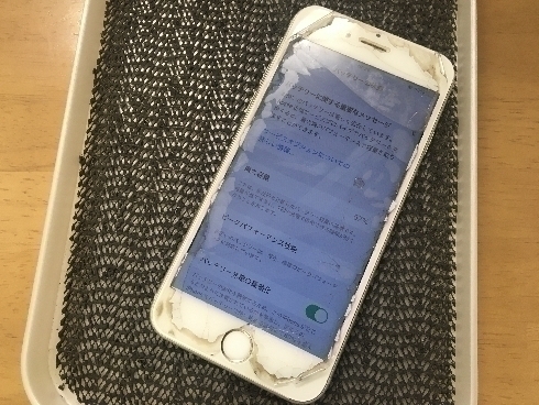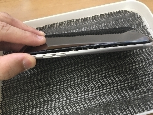 確認させていただきますと、iPhone6のバッテリーが膨張してしまい画面が押し上げられて浮き上がっていました。