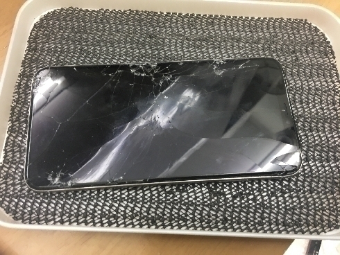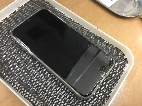 お客様はiPhoneを取り出そうとした時に落としてしまい、拾い上げたら全く映らなくなってしまったとの事でした。