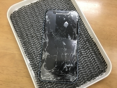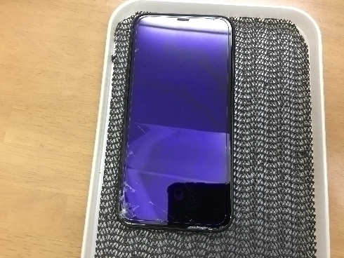 iPhoneX上部が割れ、液晶破損している状態でした。