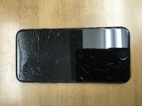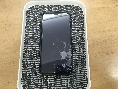 今まで割れたことがなかったのに一回コンクリートへ落としただけでバキバキになってしまった、とのことで当日予約を頂きご来店いただきました。