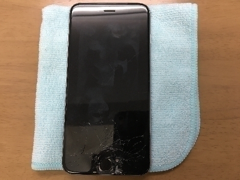 タッチ操作は問題なくできましたが、割れてしまったガラスの破片や砂誇りなどが