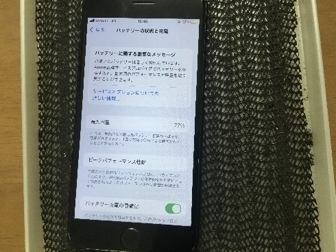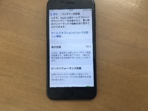 バッテリー状態の最大容量は80%でバッテリーの減りが早いとの事!