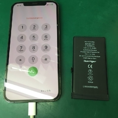 バッテリー最大容量は86%ありましたが劣化メッセージが出ていて急に0まで落ちて電源が切れてしまうとの事でした。
