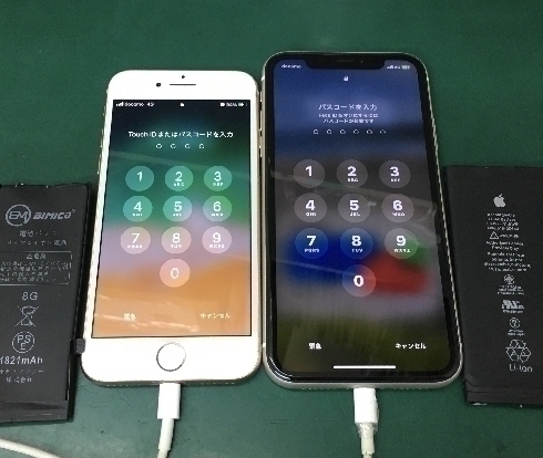 両方とも電池の減りが早く、最大容量も80%以下に低下していました。