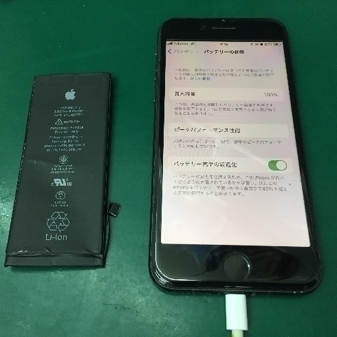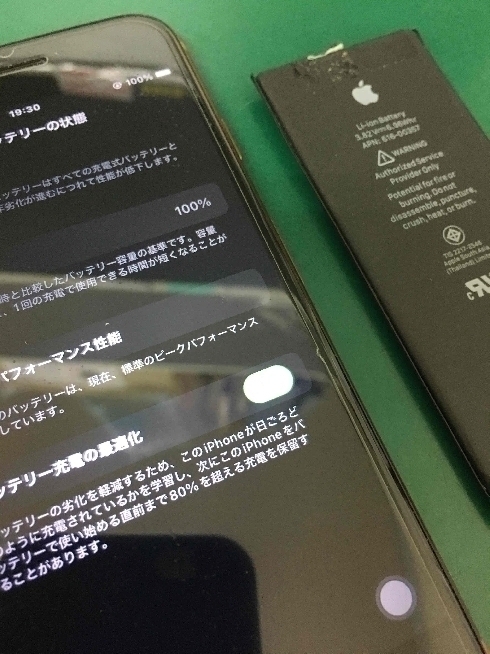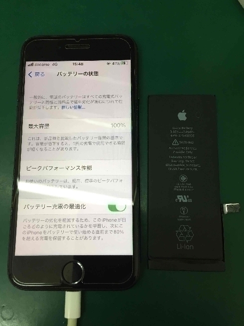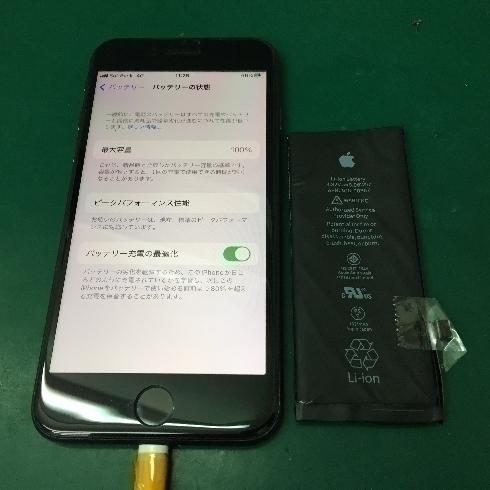 今回はバッテリーの減りも早く修理受付の時点で、どんどん減っていく状態でしたので交換で無事にバッテリーの持ちが良くなりました!