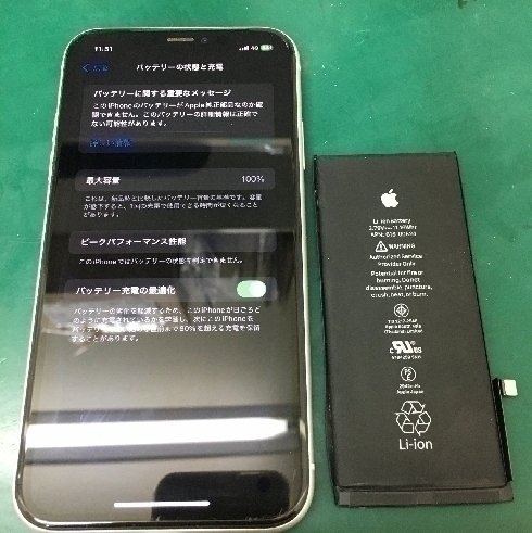 iPhone12 バッテリー交換のご依頼を承りました。
