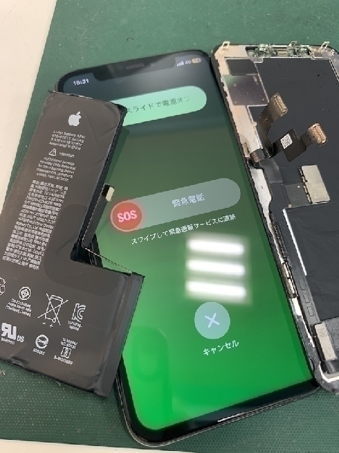 修理内容:バッテリー交換、パネル交換、水没後の端末内クリーニングと乾燥