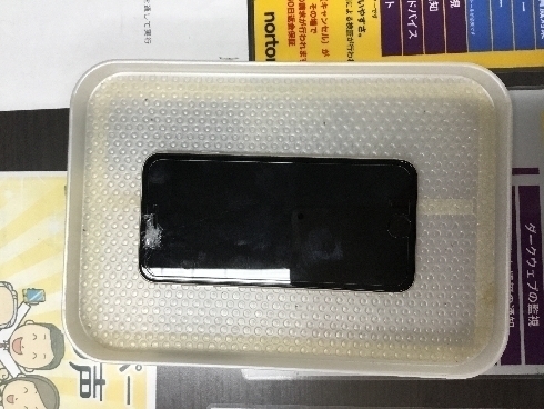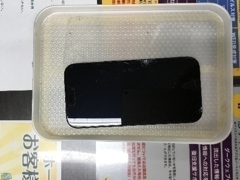 端末をお預かりさせて頂き、画面を開けて内部の点検を…みたところ水没はしていないようです。