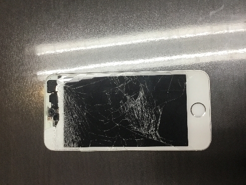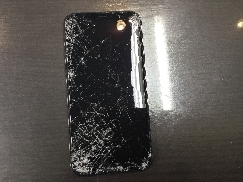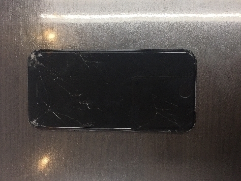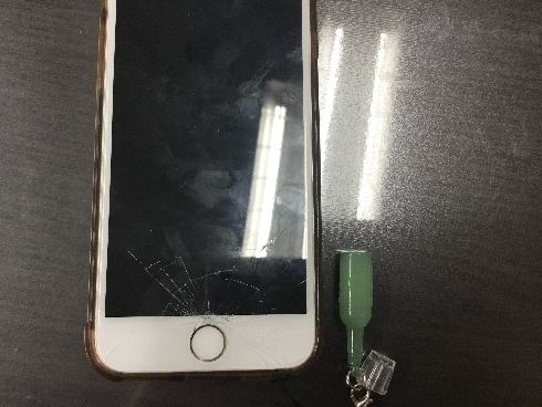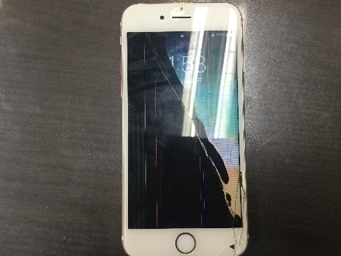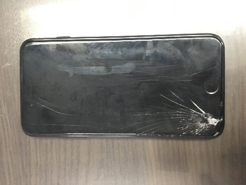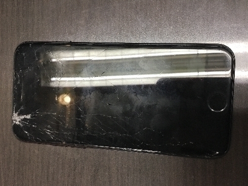 端末はiPhone7ホームボタン周りにヒビが入っておりその衝撃で液晶まで破損してしまった状態。