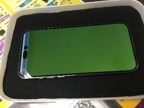 ガラス割れも発生しており、液晶画面は緑色に液漏れし、
