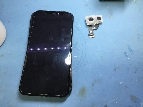 iPhone12からの機種は耐水性能upのために画面がしっかりくっついていること、画面の形状が角っとしているので開けにくいこと、画面パーツが以前までの機種よりも厚みがあり開けにくいことこの3つがあるため、急ぎはしますが画面が割れないように慎重に少しずつ画面をあけます。