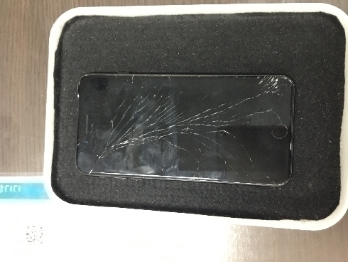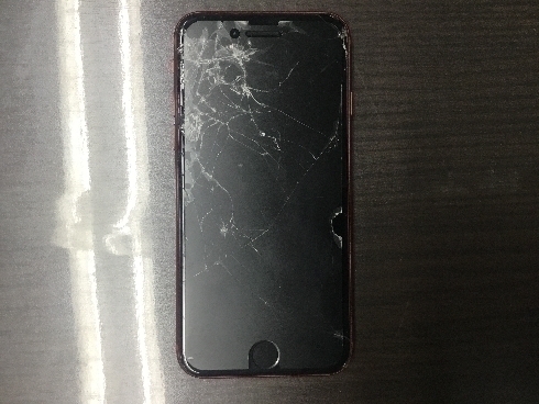 強化保護シートを付けていたそうですが、貼っていない部分から落としてしまって割れてしまった状態でした。