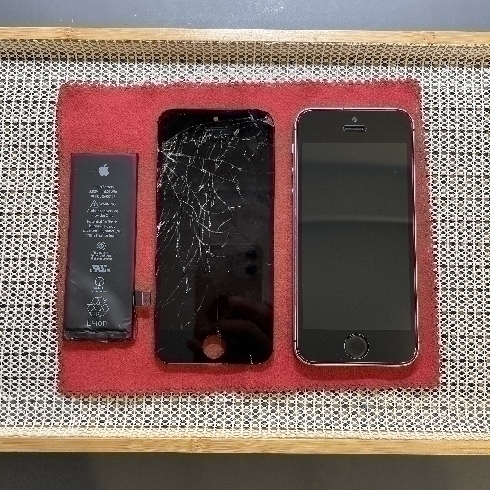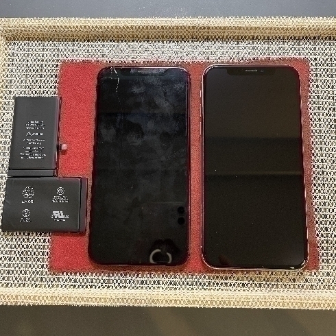 画面上部のガラス割れ修理とバッテリー交換修理事例です。