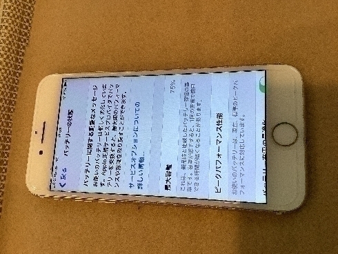 バッテリー状態は最大容量が75%。この表記は基本それ以下の容量のパフォーマンスしか出来ない状況になってる状態です。