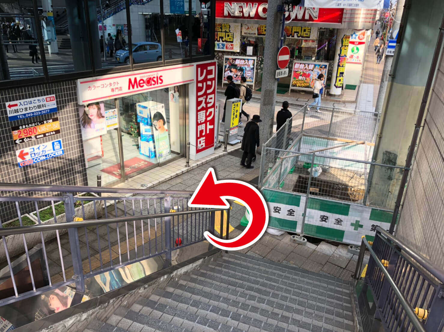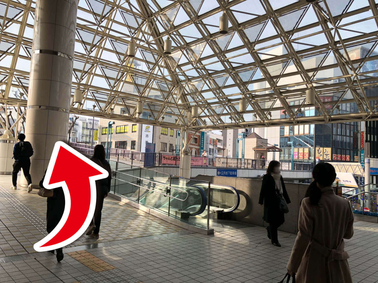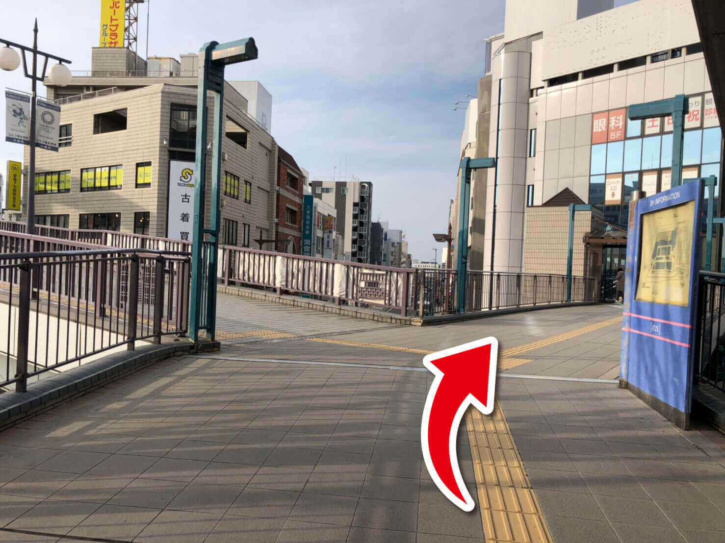 - 5.アトレ出ましたら階段を下りずに斜め左方向に進みます